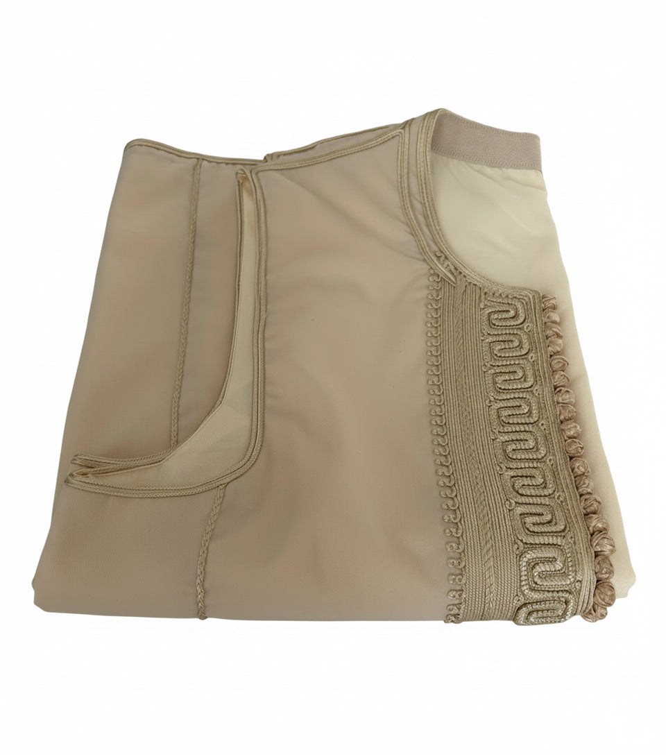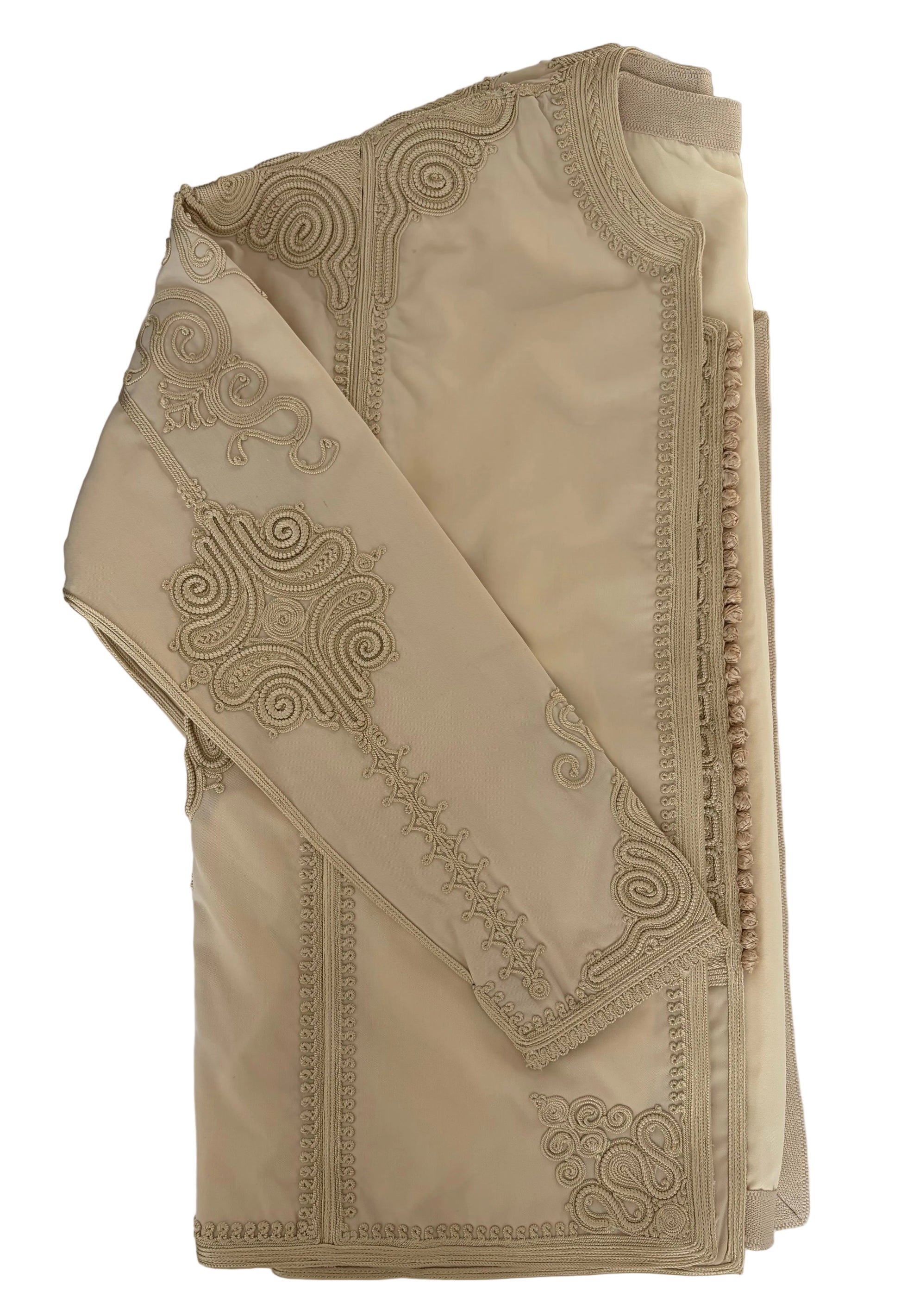 Experience the perfect blend of craftsmanship and tradition with this Gold Zboon. Traditionally worn by grooms in Libya this Zboon is sure to make you stand out. Designed for comfort and elegance it features detailed embroidery & patterns. It can be worn everyday for a classy look or for special occasions.
